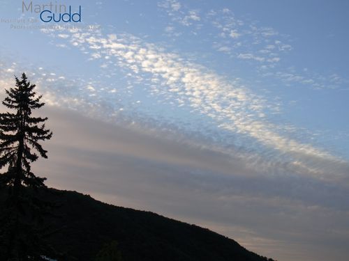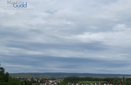 Einen typischen Altocumulus duplicatus erkennen Sie am ehesten bei indirekter Beleuchtung. Dann sind die einzelnen Wolkenschichten am besten zu erkennen. Das sieht dann bei einer doppelten Schichtung meist so aus: